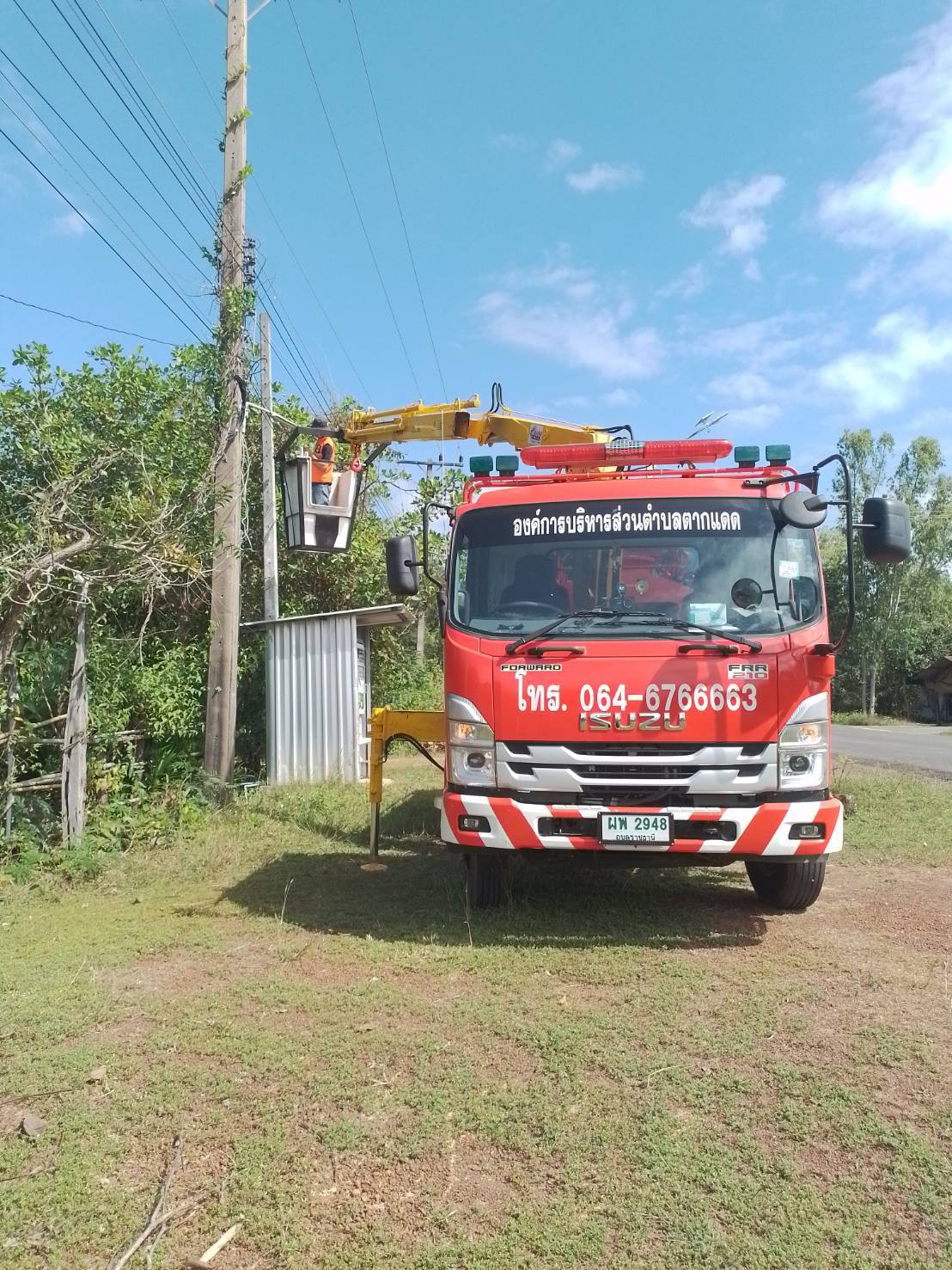 ซ่อมแซมไฟฟ้าสาธารณะ ณ หน้าที่ทำการองค์การบริหารส่วนตำบลตากแดด