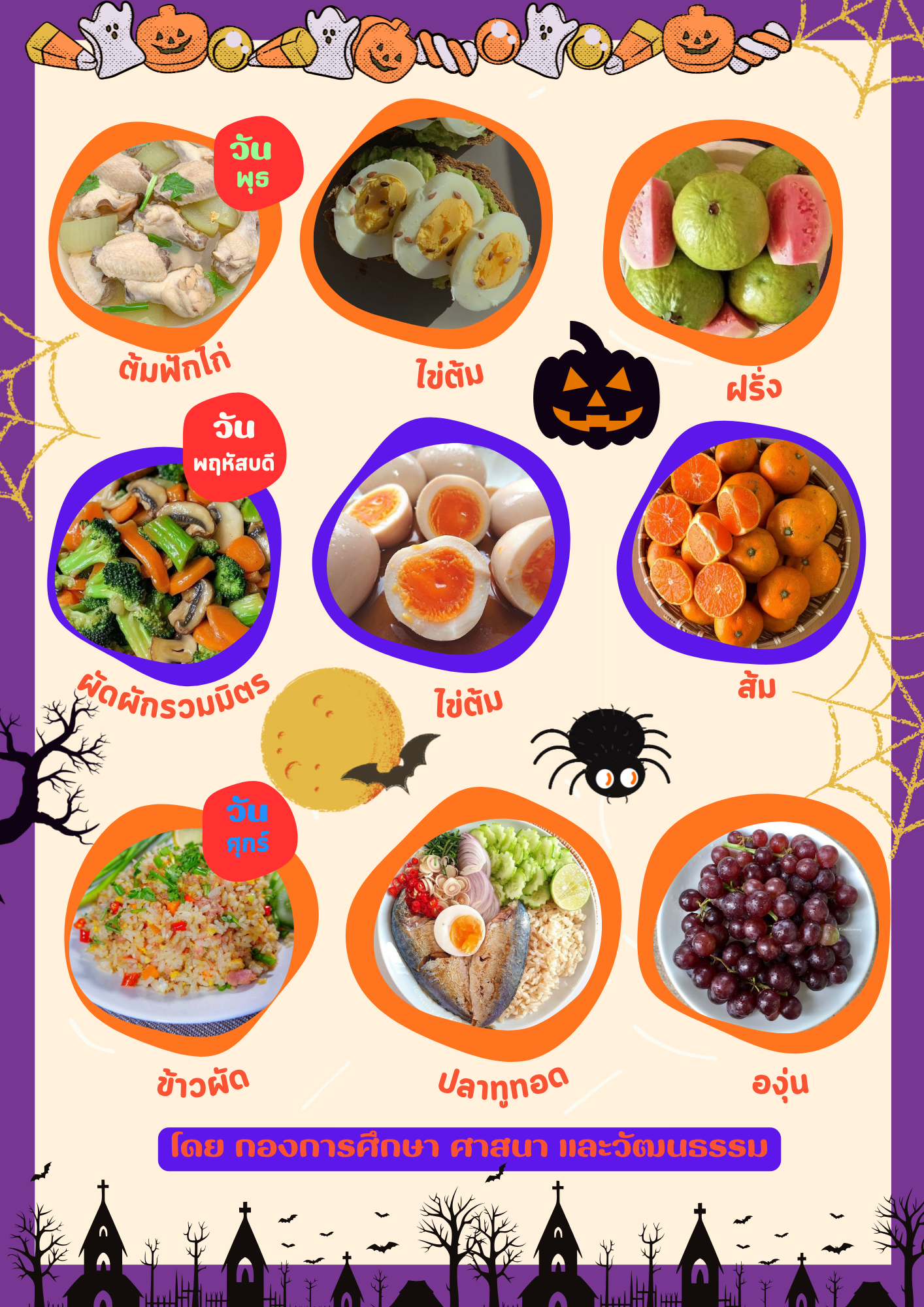 รายการอาหารกลางวันศูนย์อบรมเด็กก่อนเกณฑ์วัดศรีตัสสาราม ประจำเดือนตุลาคม 2568