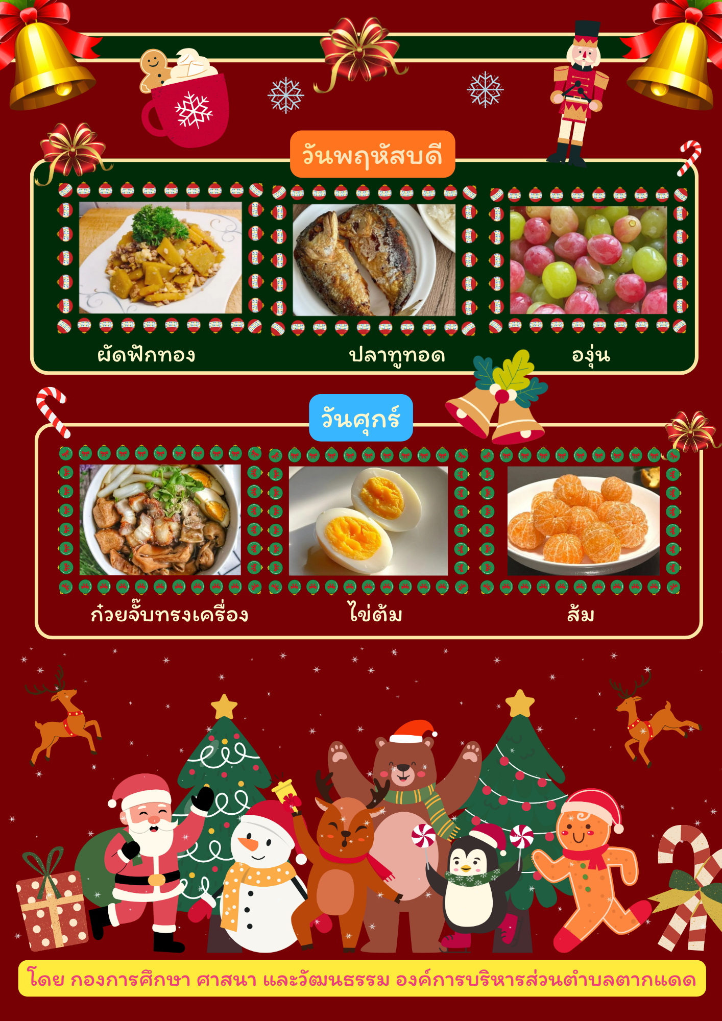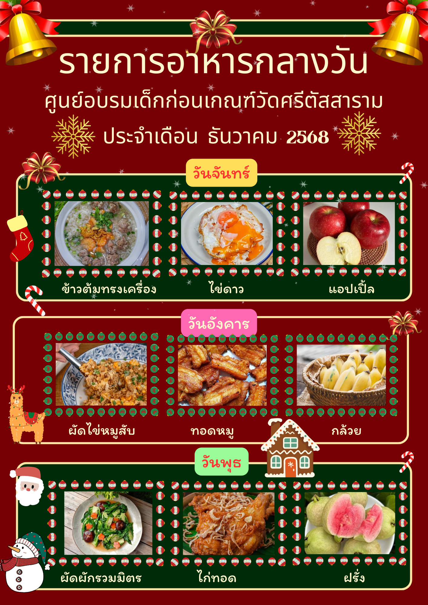 รายการอาหารกลางวันศูนย์อบรมเด็กก่อนเกณฑ์วัดศรีตัสสาราม ประจำเดือนธันวาคม 2568