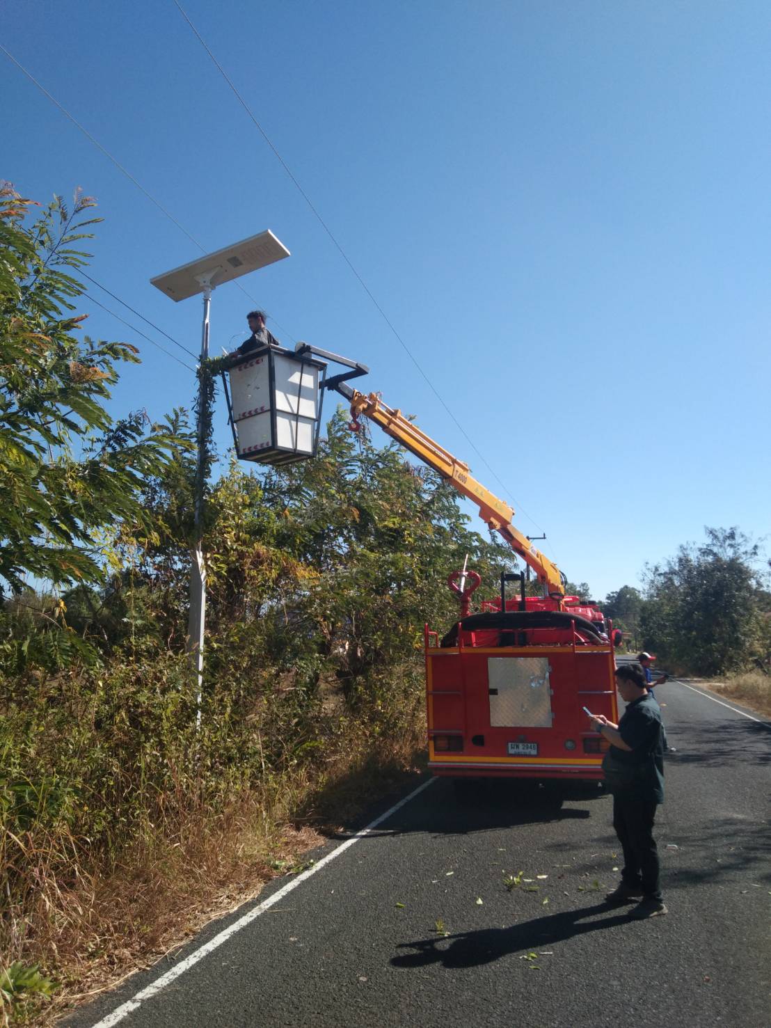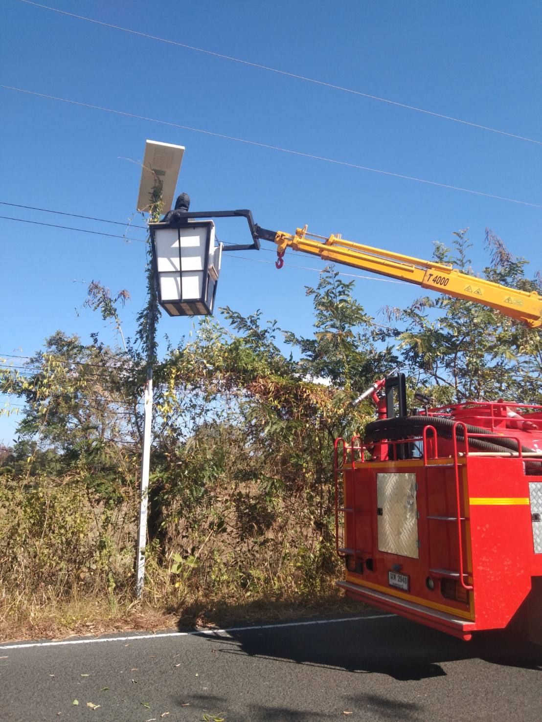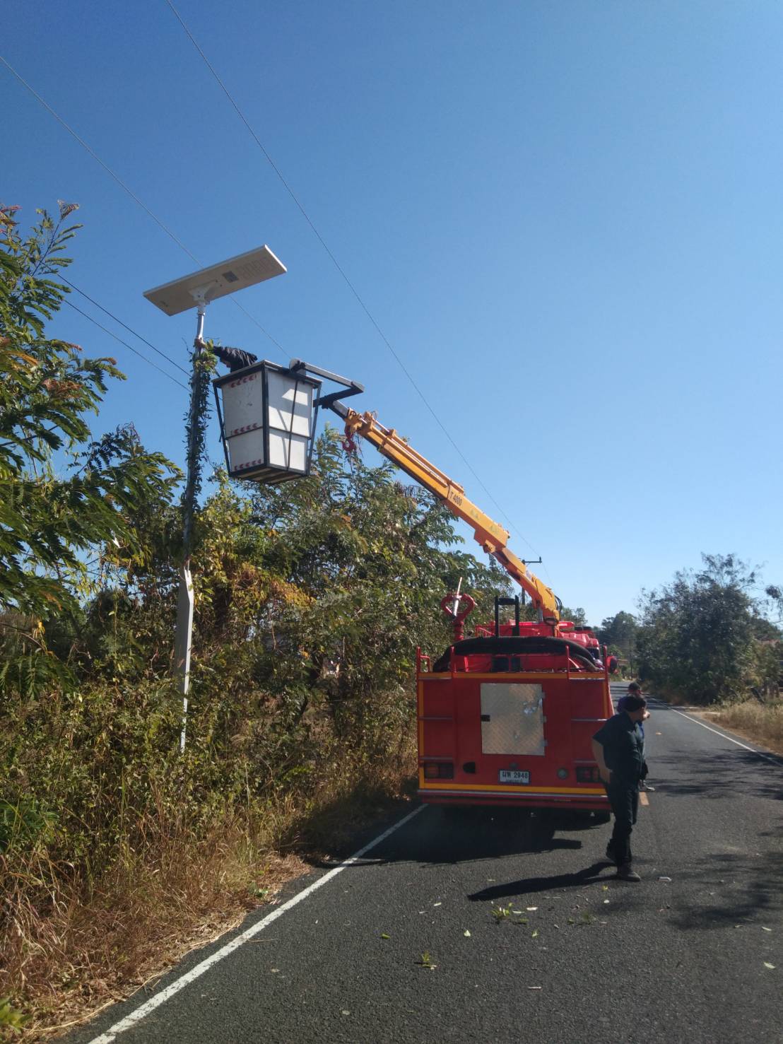 ตัดแต่งกิ่งไม้ เครือไม้ ที่เกาะตามเสาไฟ ในบริเวณถนนสายทางบ้านคำปะโอ๊ะ หมู่ที่ 2
