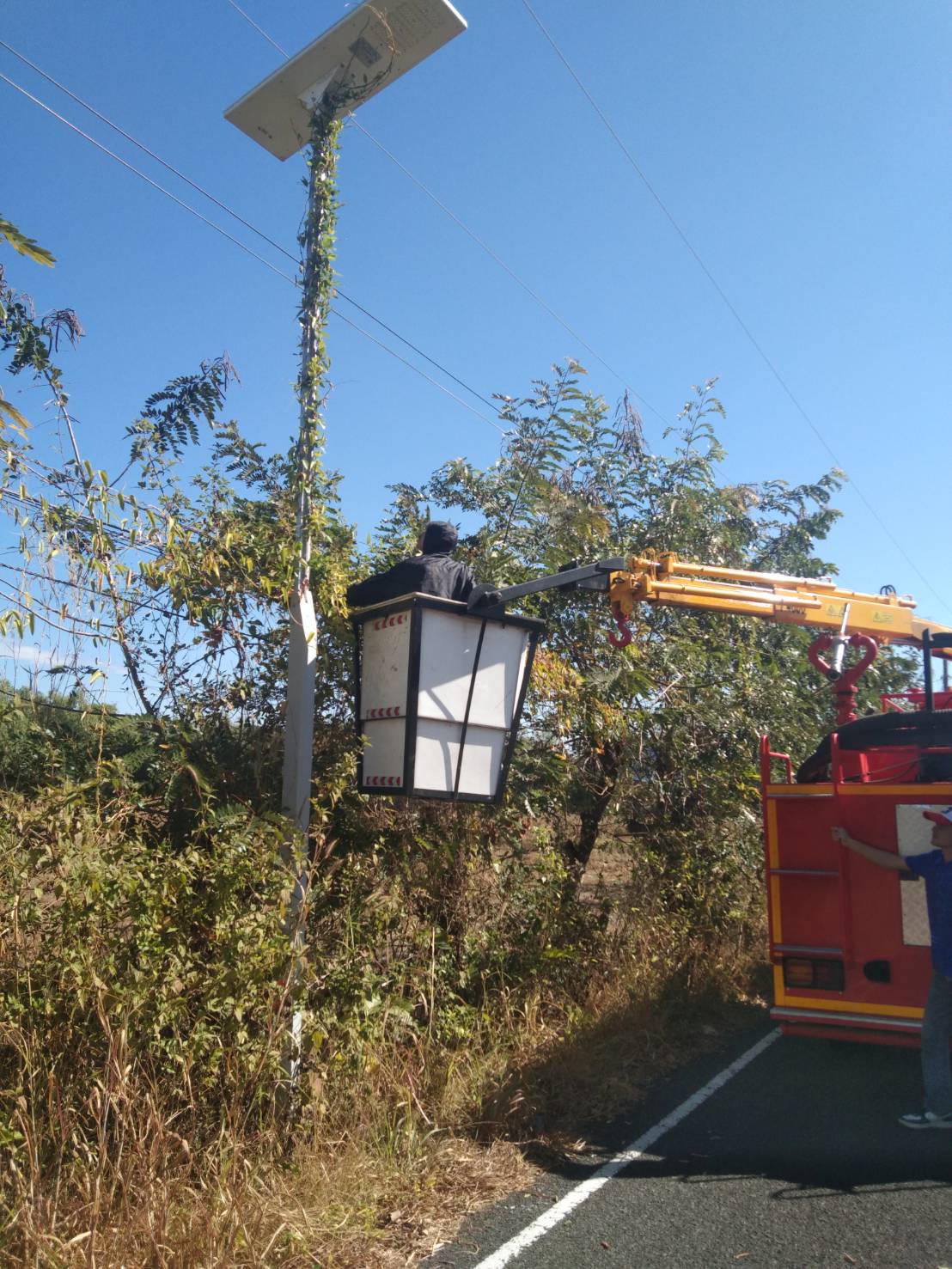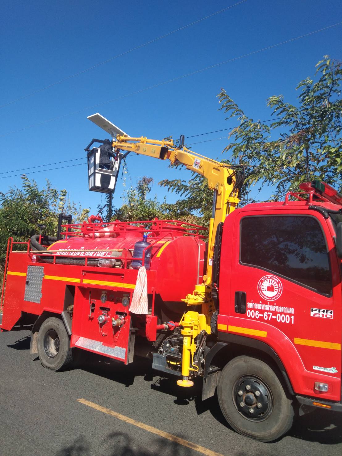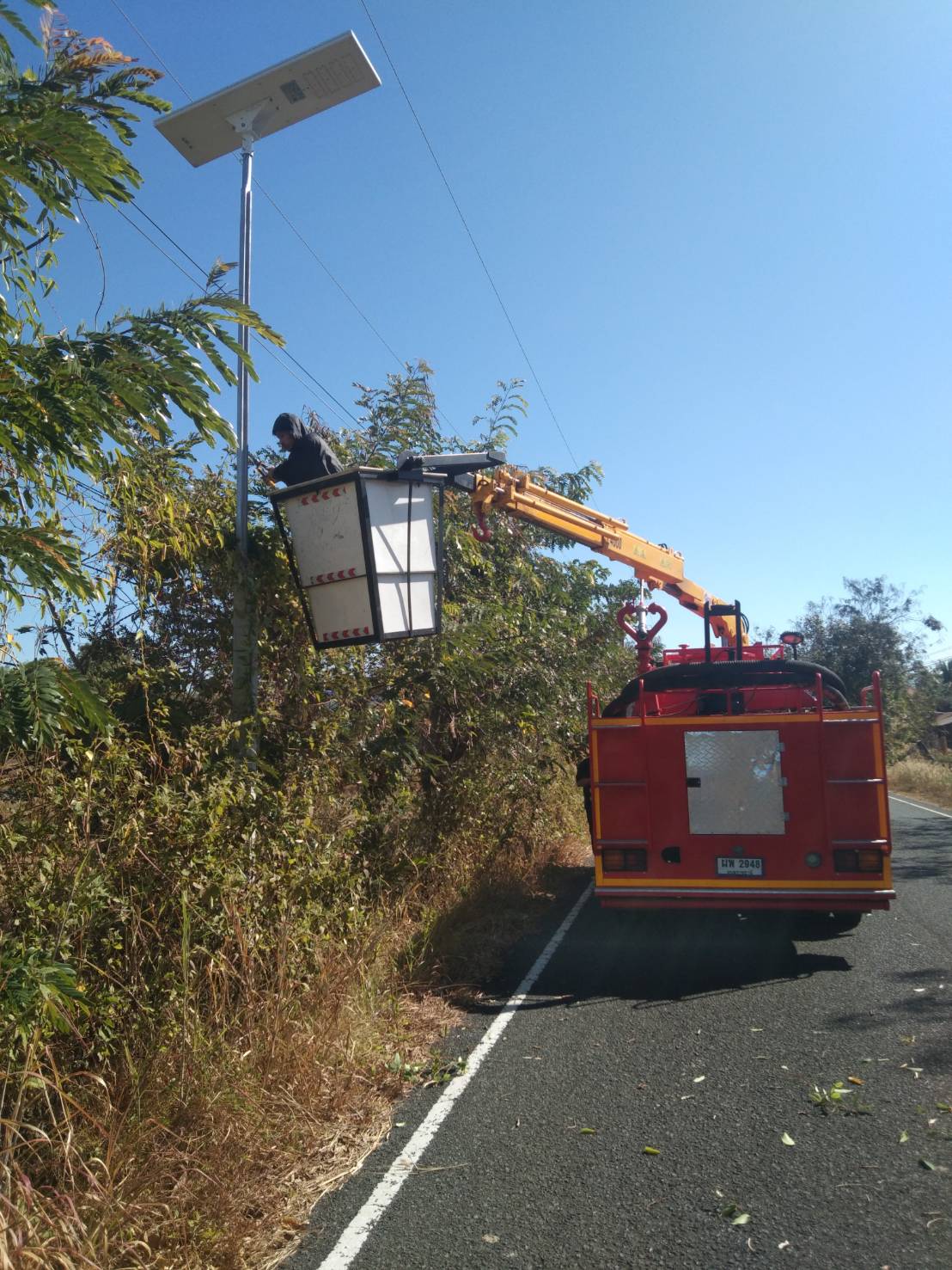 ตัดแต่งกิ่งไม้ เครือไม้ ที่เกาะตามเสาไฟ ในบริเวณถนนสายทางบ้านคำปะโอ๊ะ หมู่ที่ 2