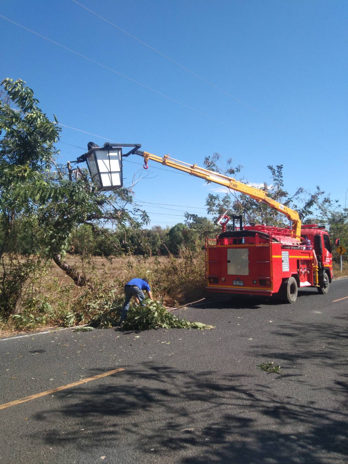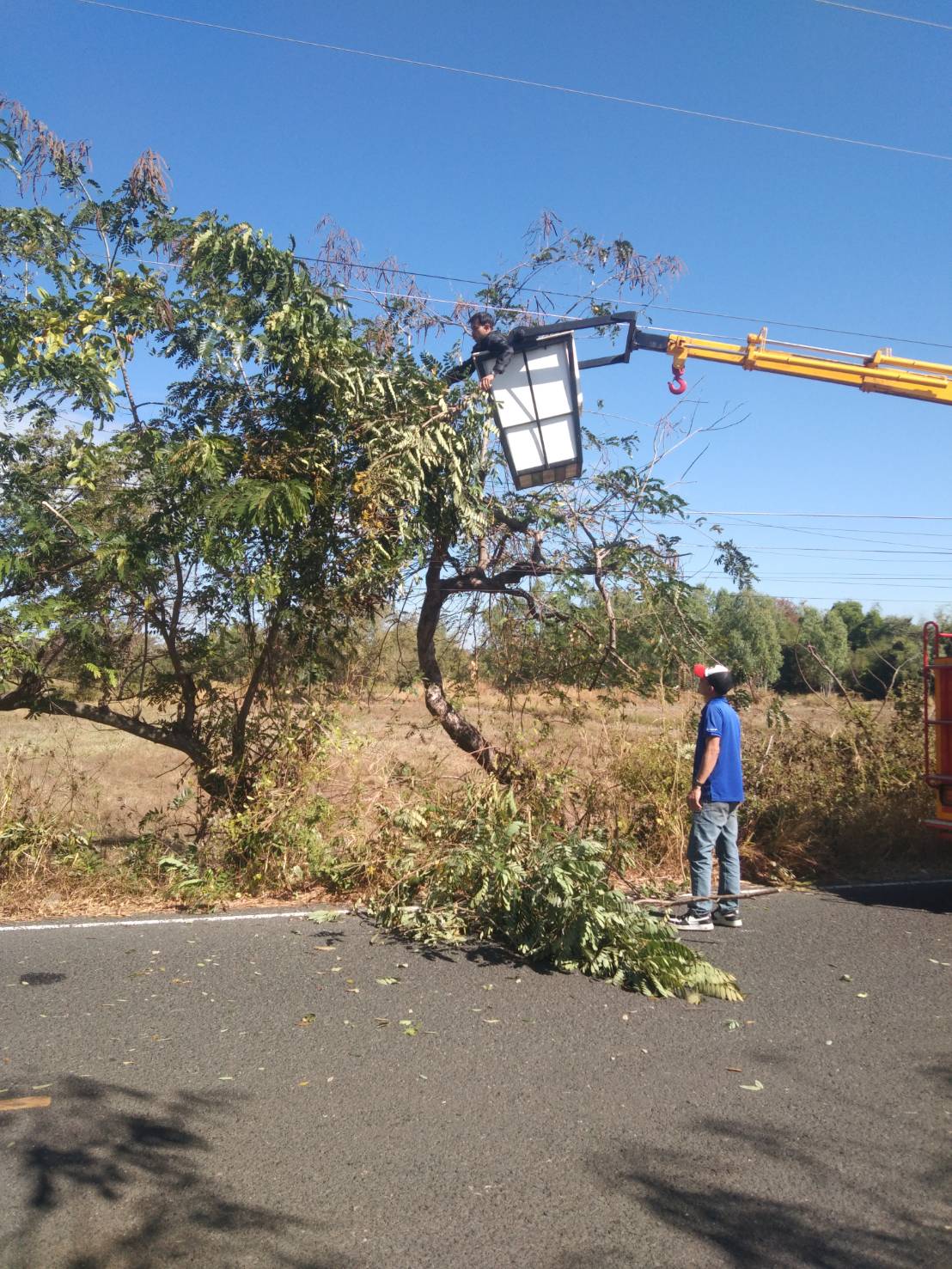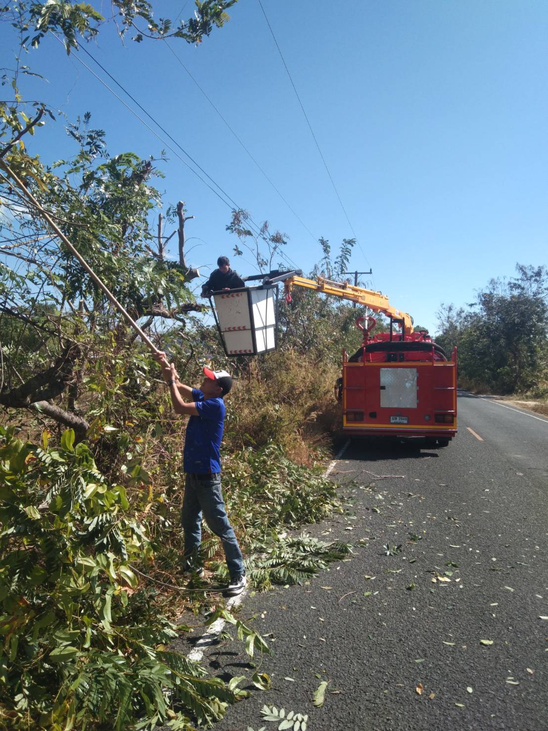 ตัดแต่งกิ่งไม้ เครือไม้ ที่เกาะตามเสาไฟ ในบริเวณถนนสายทางบ้านนาบัว หมู่ที่ 10