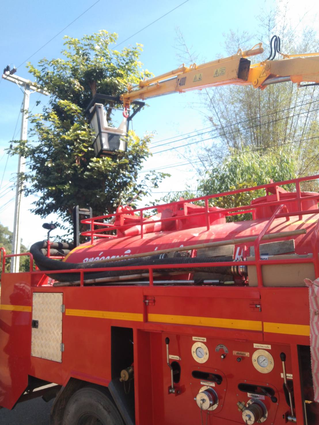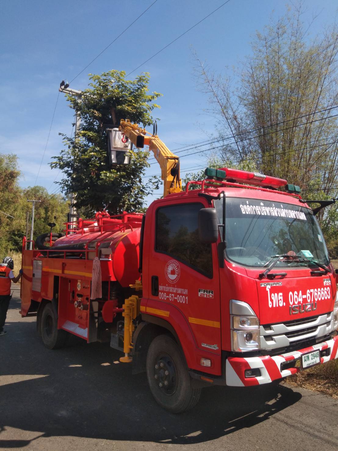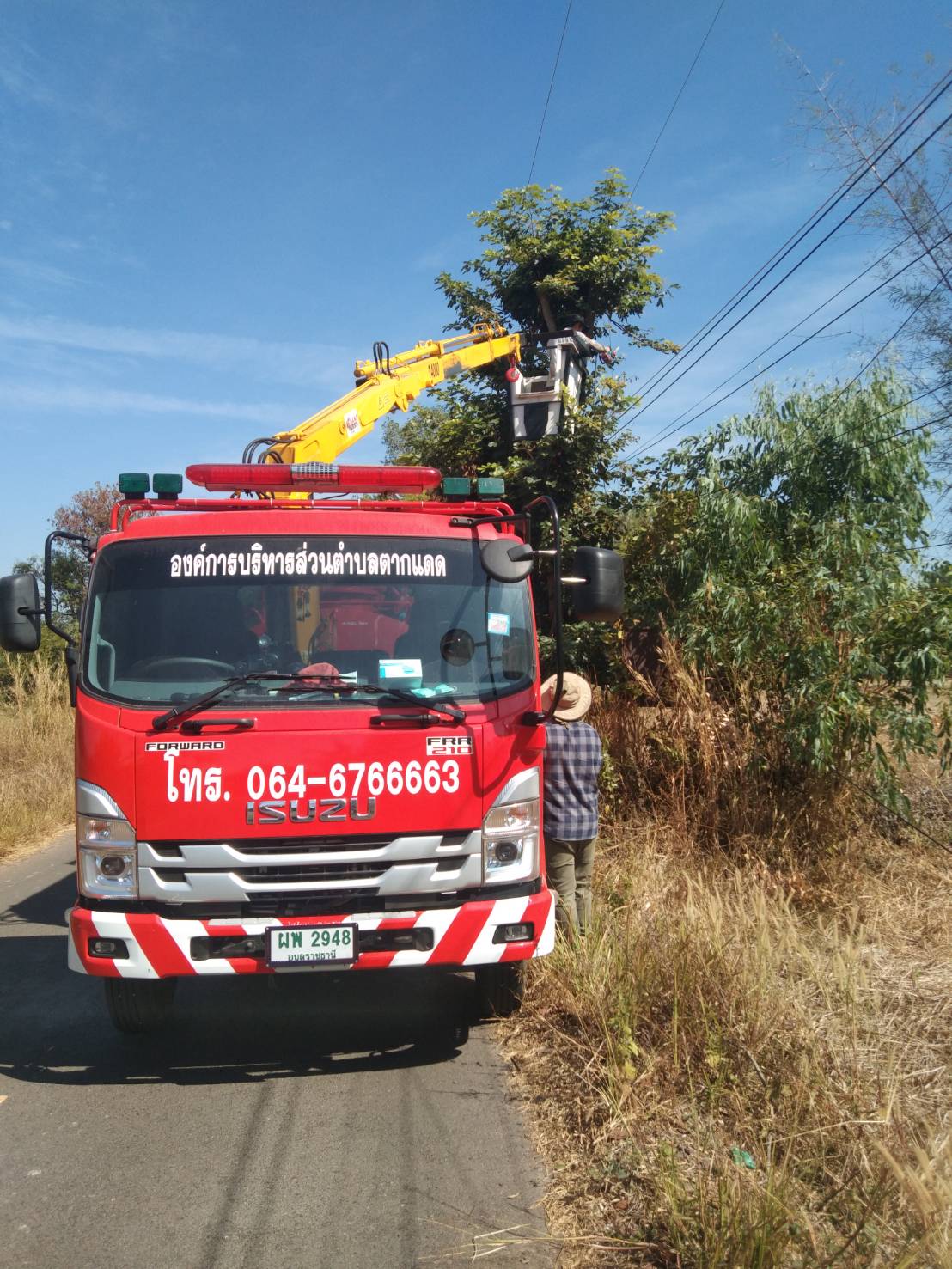 ตัดแต่งกิ่งไม้ เครือไม้ ที่เกาะตามเสาไฟ ในบริเวณถนนสายทางบ้านนาบัว หมู่ที่ 10