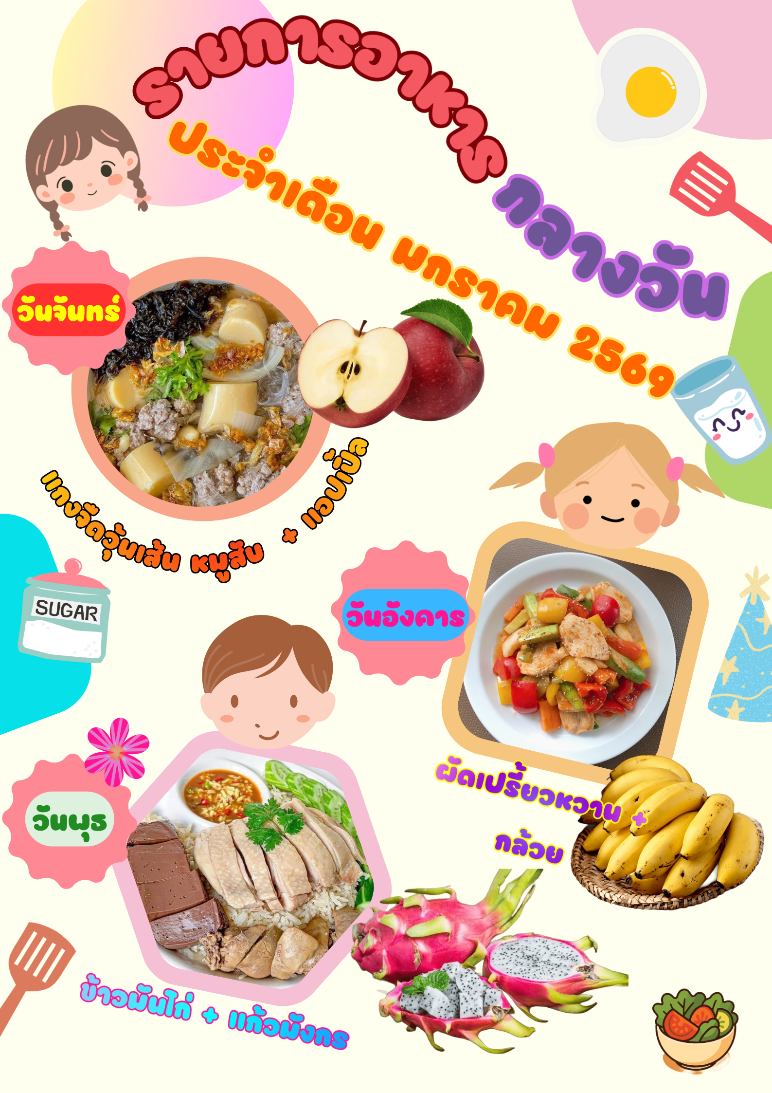 รายการอาหารกลางวันศูนย์อบรมเด็กก่อนเกณฑ์วัดศรีตัสสาราม ประจำเดือนมกราคม 2569
